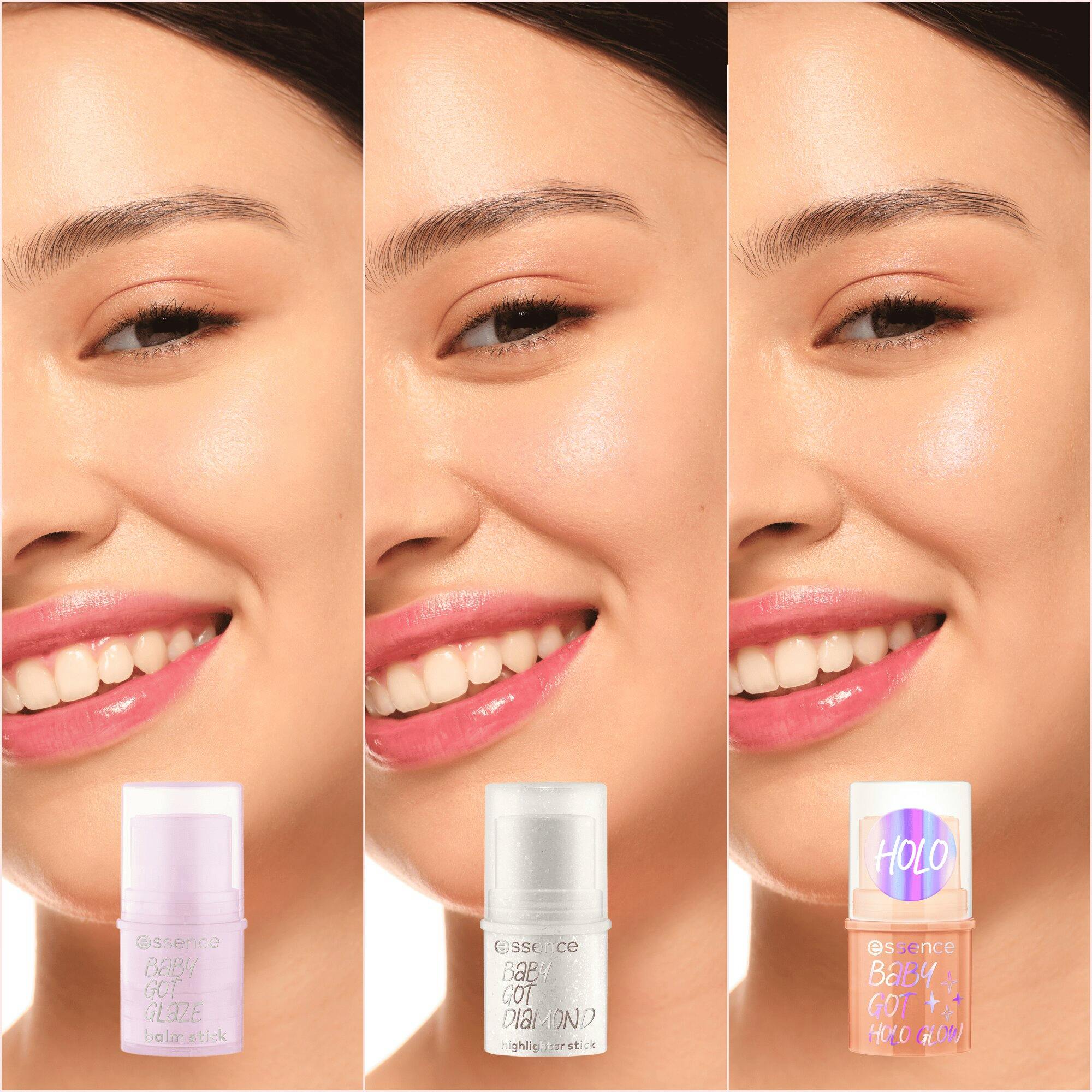 De Baby Got Glaze Balm Stick van Essence is een veelzijdige highlighter die je huid een stralende, frisse glans geeft.