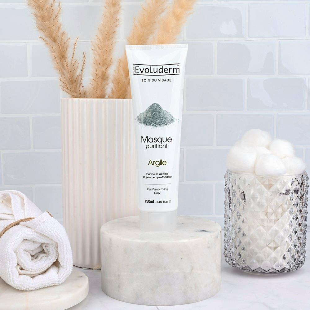Evoluderm Purifying Clay Face Mask is een gezichtsmasker dat zorgt voor een schonere huid en onzuiverheden vermindert.