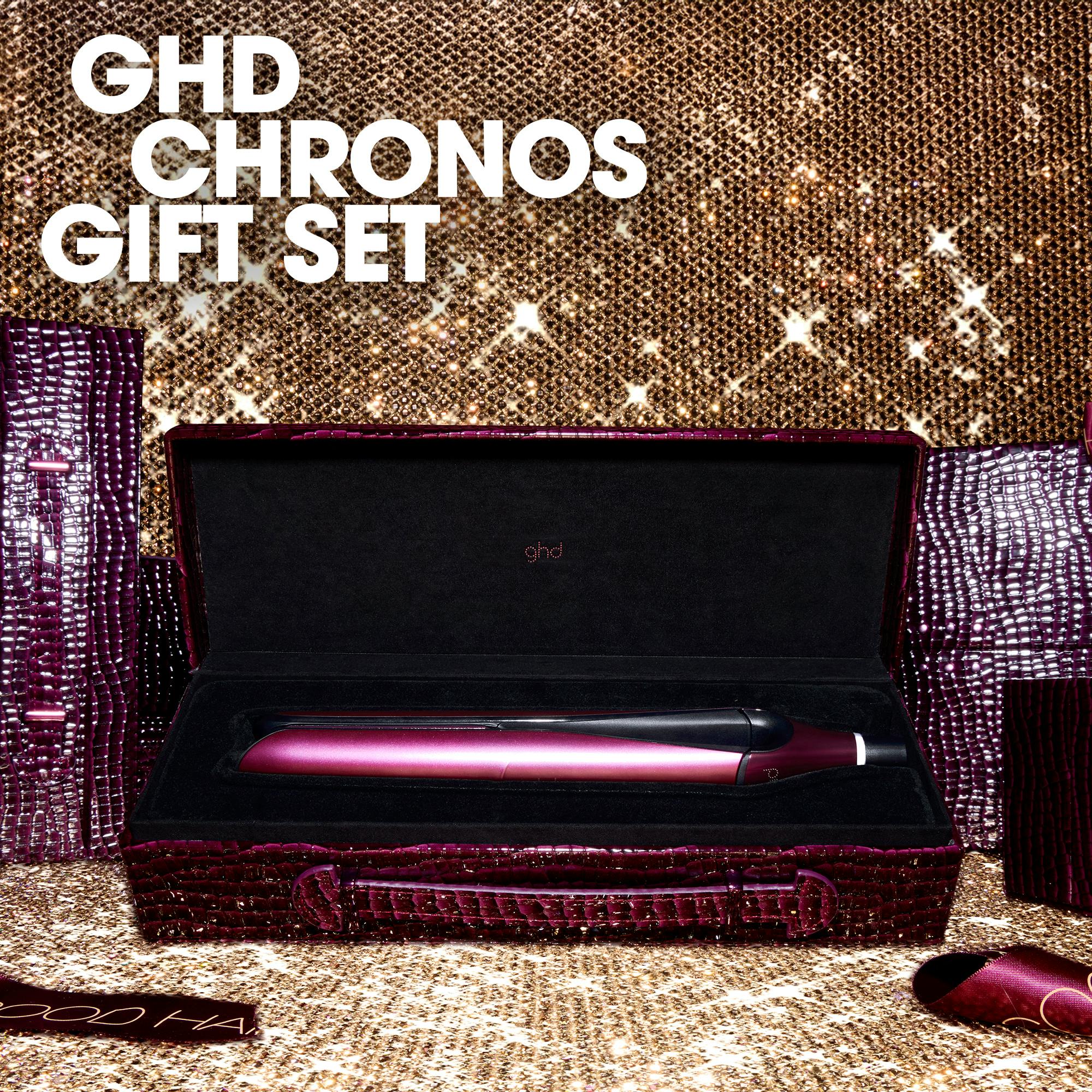 De ghd Chronos Limited Edition Gift Set - Hair Straighteners in Cherry Chic is een professioneel stylingapparaat dat schoonheid en technologie combineert in een elegant ontwerp.
