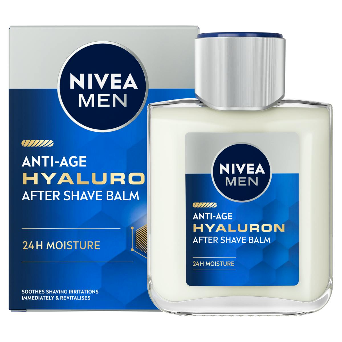 NIVEA MEN Anti-Age Hyaluron After Shave Balsem 100ml verzacht en verfrist de huid onmiddellijk na het scheren. Voor een gezonde en frisse uitstraling.