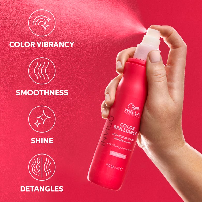Invigo Color Brilliance Miracle BB Spray van Wella Professionals is de perfecte oplossing om de kleur van je gekleurde haar te behouden en te versterken.