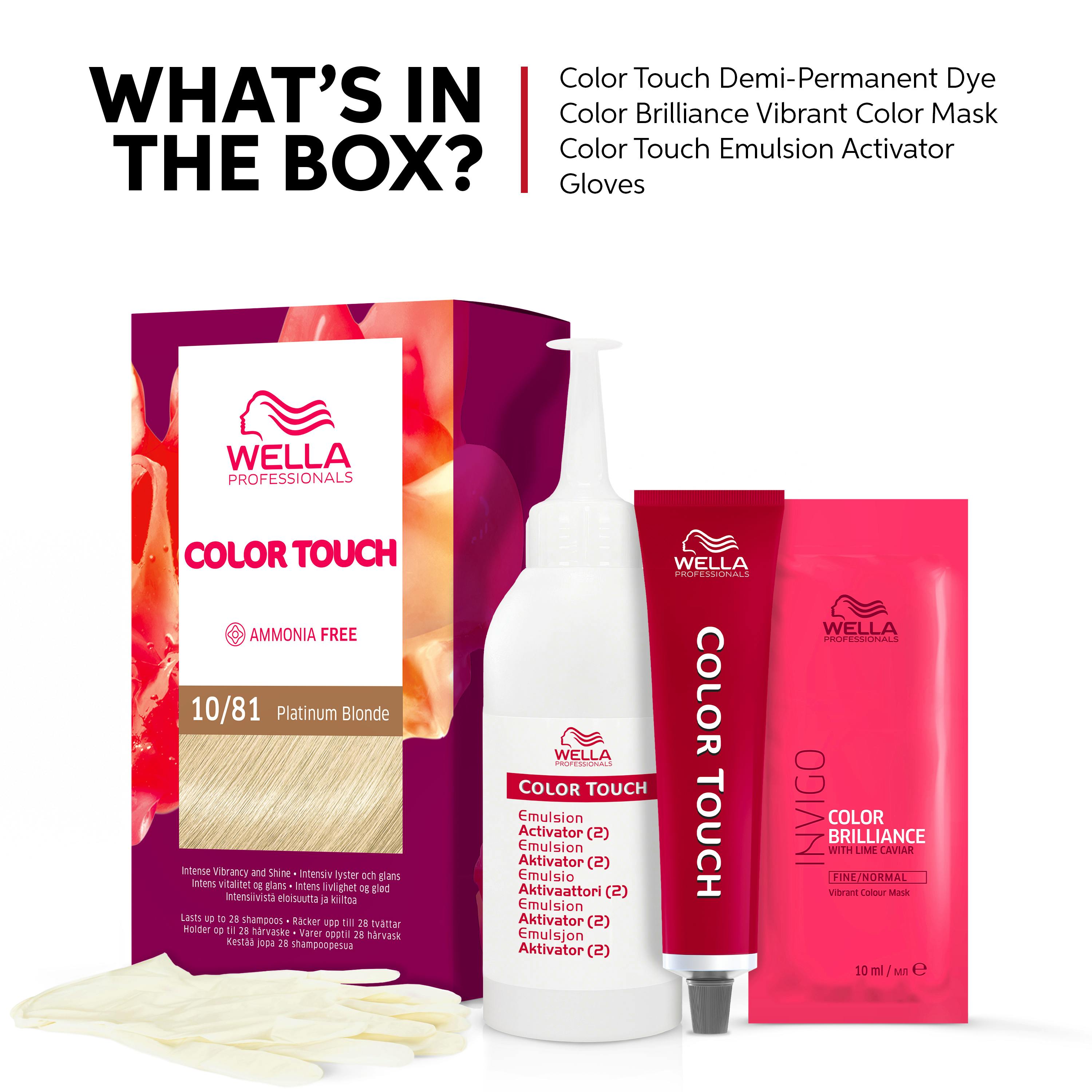 Wella Professionals Color Touch Rich Naturals is de ideale semipermanente haarkleuring voor wie snel een nieuwe look wil uitproberen! Deze haarkleuring vraagt weinig onderhoud en laat je toe om in minder dan 20 minuten een frisse haarkleur te bekomen. Dankzij de ammoniakvrije samenstelling verrijkt met keratine, zorgt Color Touch Rich Naturals voor een schitterende glans en een authentieke, natuurlijke haarkleur met subtiele nuances.